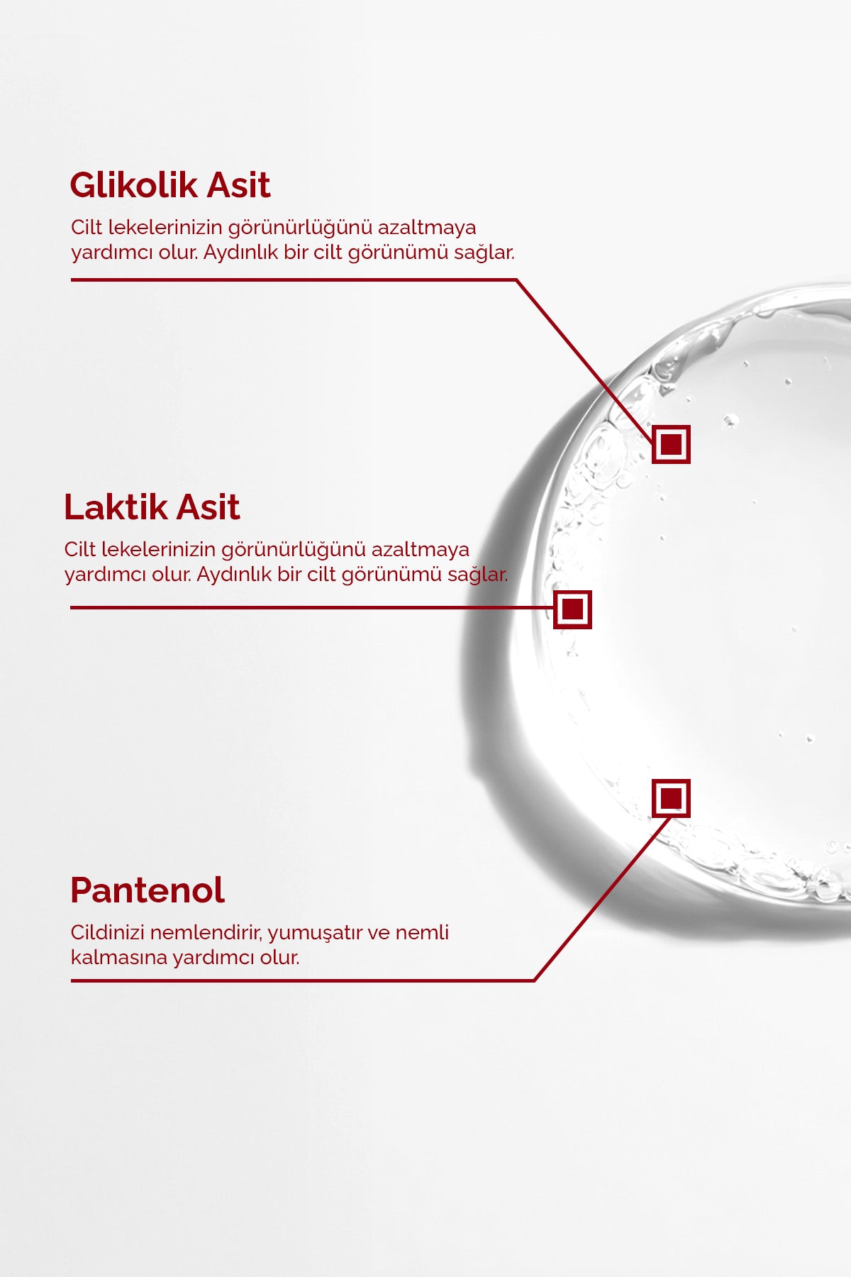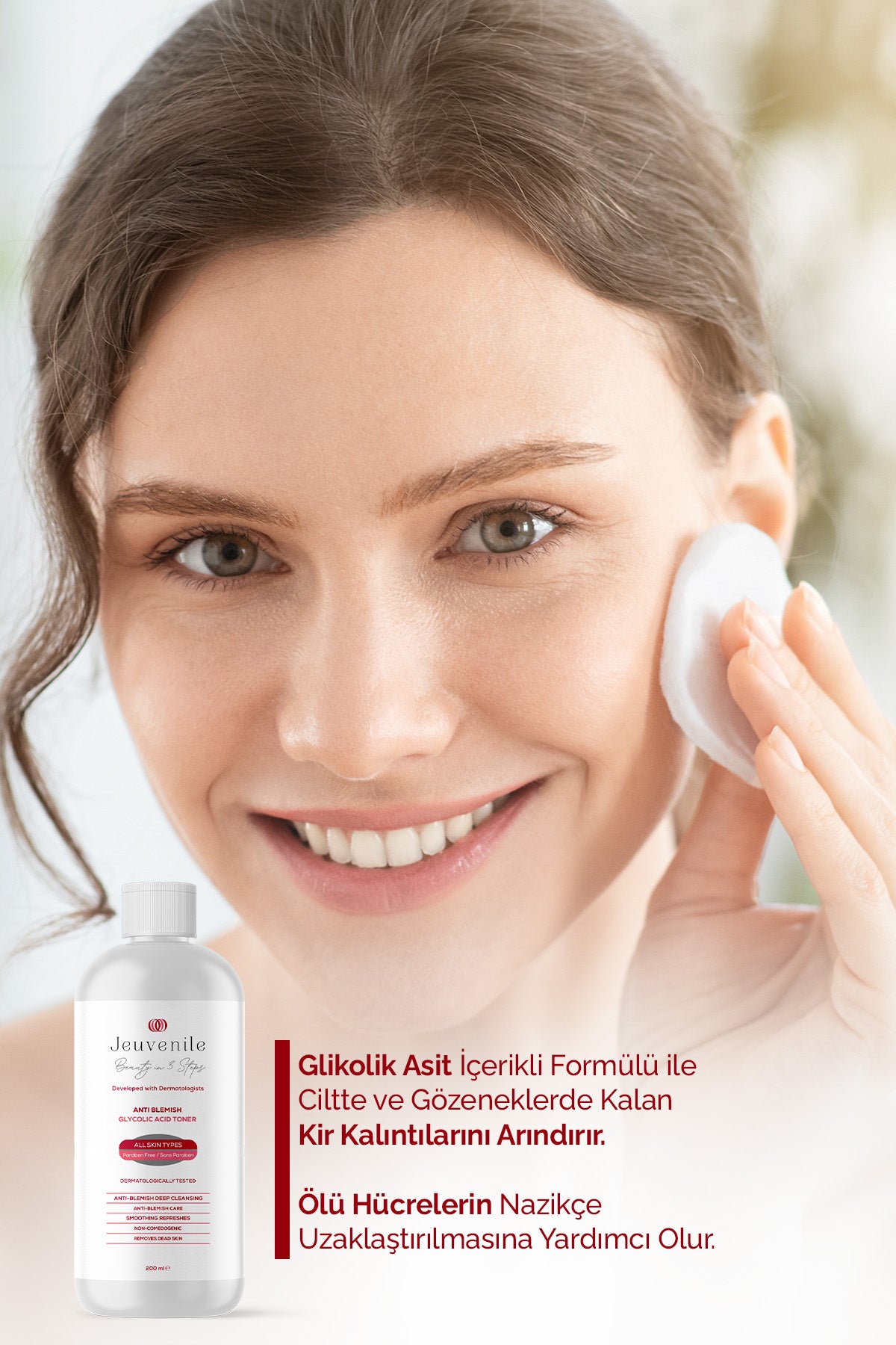 Ciltteki lekeleri ve renk düzensizliklerini hedefleyen etkili bir üründür. İçeriğindeki Glycolic Acid, cildin üst tabakasını nazikçe soyarak lekelerin görünümünü azaltır ve cildi aydınlatır. Aynı zamanda Hamamelis Virginiana Leaf Extract ve diğer doğal özler, cildi sakinleştirir ve nemlendirir. Kullanım sonucunda cilt daha eşit tonlu, lekesiz ve canlı bir görünüme sahip olur. Bu tonik, cilt bakım rutininizin önemli bir parçası olabilir ve lekeli ciltler için özel olarak tasarlanmıştır.